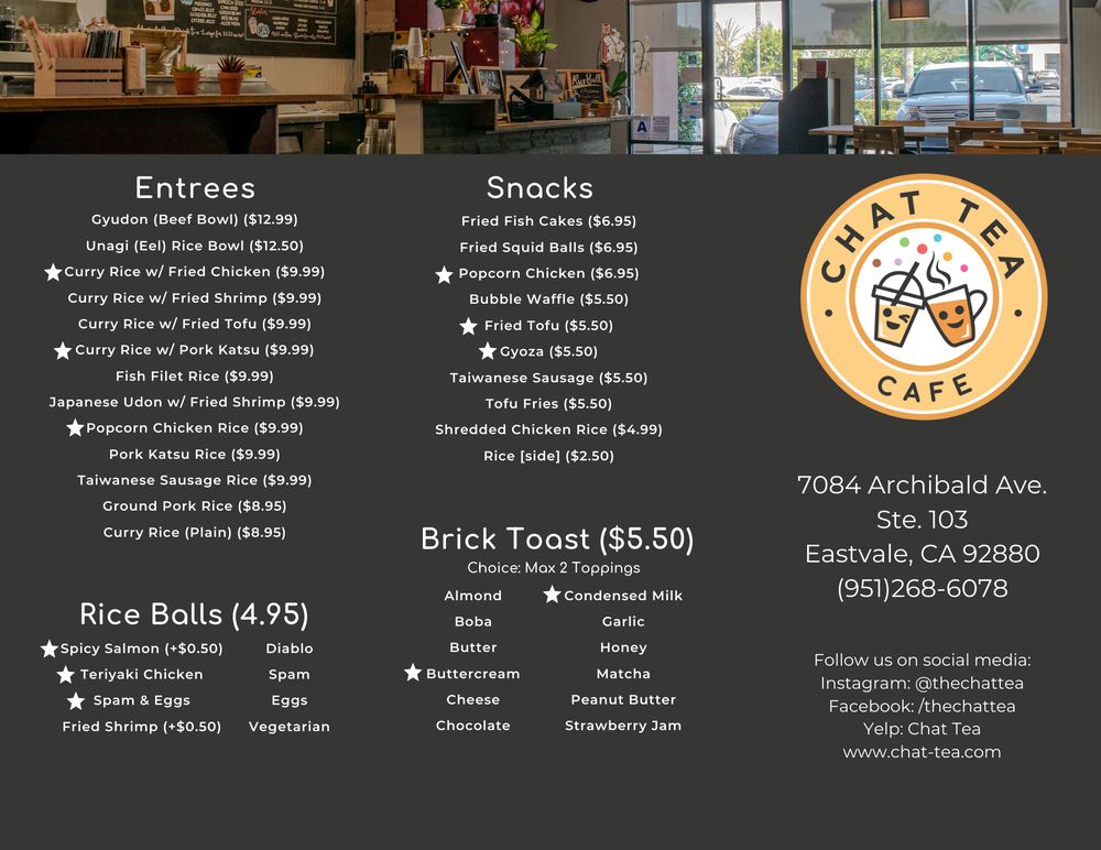 Introducing Chat Tea Eastvale, a classy and quiet Asian-owned restaurant located at 7084 Archibald Ave Ste 103 in Eastvale, CA. This hidden gem offers a wide range of amenities including delivery, takeout, reservations, vegan options, and wheelchair accessibility. With options to pay using Android Pay, Apple Pay, credit cards, or even cryptocurrency, Chat Tea Eastvale caters to a diverse range of customers. The restaurant also features outdoor seating, free Wi-Fi, and happy hour specials, making it an ideal spot for working or socializing. Their menu includes a variety of Asian dishes, and the attentive waiter service ensures a pleasant dining experience. With options for private dining and catering, Chat Tea Eastvale is a versatile choice for any occasion. Experience the delicious flavors and excellent service at this must-visit eatery.